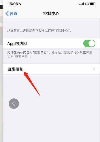 3、进入到“控制中心”界面后,选中“自定控制”功能设置。