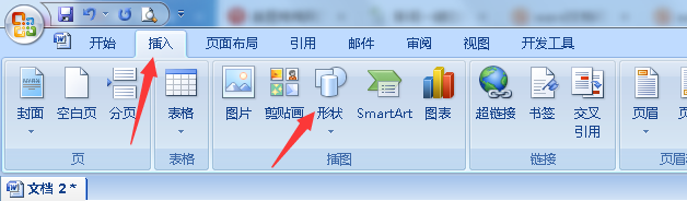 1、打开word文档,点击菜单栏上的插入选项卡,再选择形状。