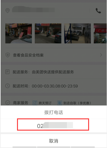2、弹出一个电话号码窗口,再点击【电话号码】,即可拨打商家电话了。