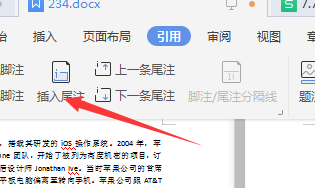2、在编辑的word文档,例如给【春晓】加一个尾注,选择引用选项卡。