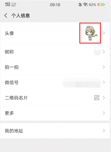 2、进入到个人信息界面之后,点击头像旁的图像。