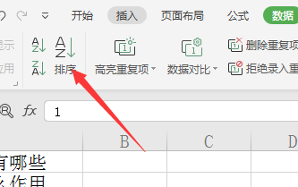 2、选中表格,在上方“数据”选项卡里点击“排序”选项。