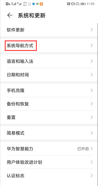 3、返回键在第二种“三键导航”方式中,点击“三键导航”后的圆形按钮即可设置。点击小三角即可返回。