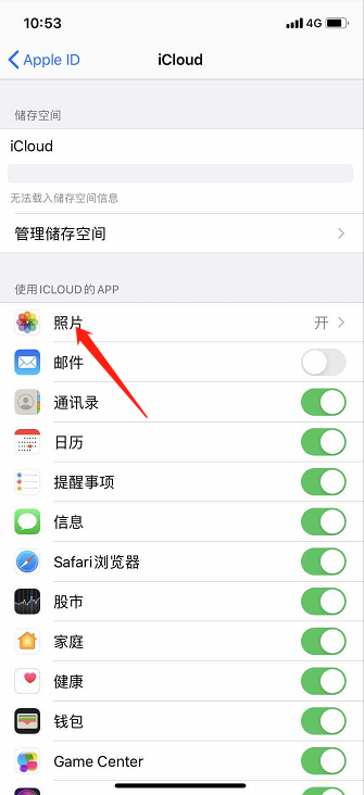 4、然后选择【照片】并点击;