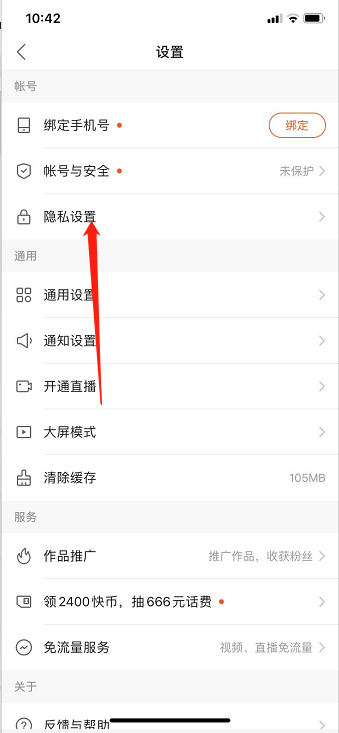 4、在打开的设置的操作界面中,点击“隐私设置”选项。