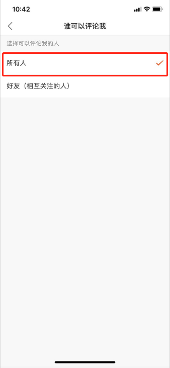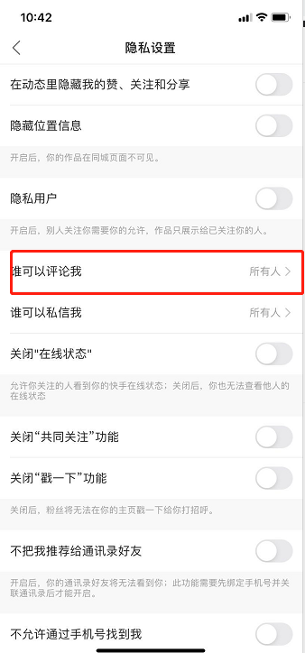 5、在打开的“隐私设置”的操作界面中,点击“谁可以评论我”选项。