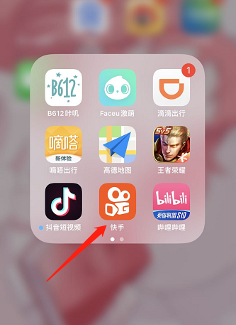 1、首先打开手机界面,然后点击手机界面中的“快手”图标。