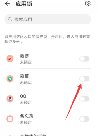 4、输入应用锁验证密码后关闭微信右侧的开关即可。