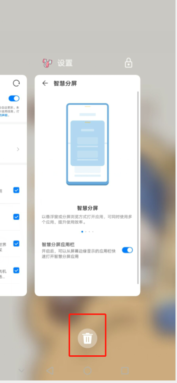 2、在弹出运行应用图标的下方,有一个删除按钮,点击即可一键关闭所有打开的应用。