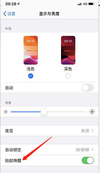 3、进入页面后,即可看到抬起唤醒,将其按钮打开即可。