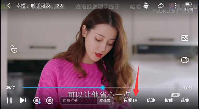 优酷设置只看ta的方法是:首先点击打开想看的视频,在视频的播放窗口下,会出现一个“只看TA”的选项,选择只看的人就可以了。