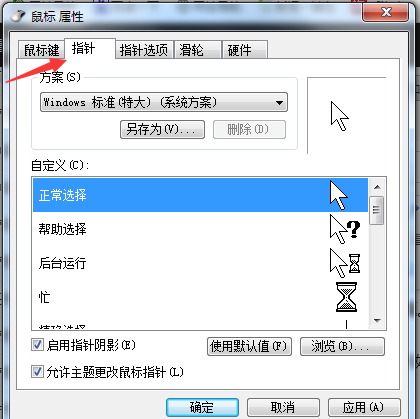 3、如果鼠标与电脑连接完好且无故障,就在控制面板中选择“鼠标”,然后选择指针来帮助找到鼠标箭头。