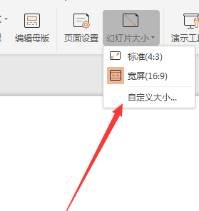 3、点击幻灯片大小图标里的自定义大小。