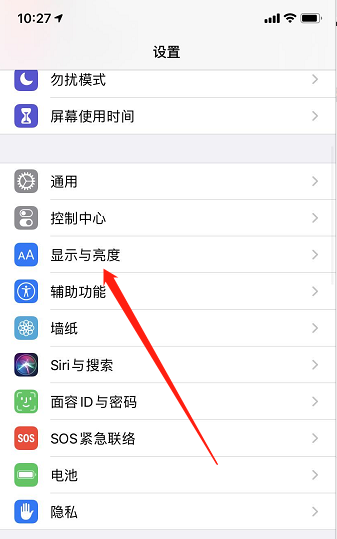 2、进入设置界面后,点击【显示与亮度】功能按钮,进入下一界面。