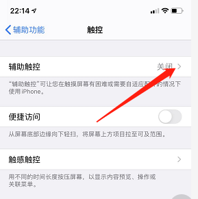 4、随后就可以看到“辅助触控”,将该按钮打开即可。