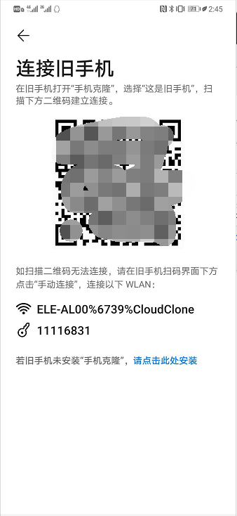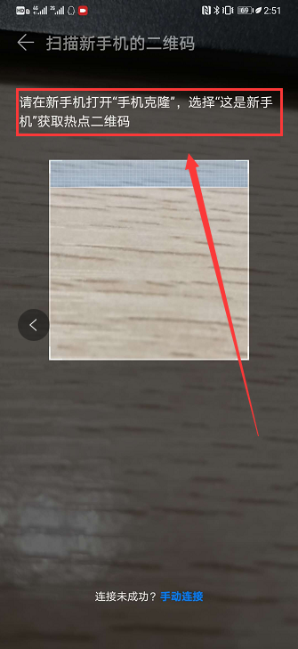 3、点击“这是旧手机”出现的扫码框扫描“这是新手机”的二维码。