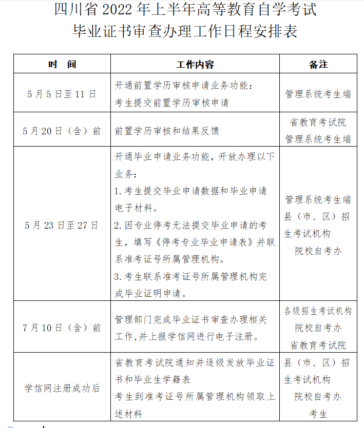 (五)根据教育部教育考试院关于印发《高等教育自学考试毕业证书电子注册办法》的通知(教试中心函〔2014〕138号)精神,毕业申请经我省审核通过后,须报教育部教育考试院完成学信网电子注册,注册成功后方可统一颁发毕业证书。