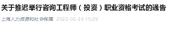 2022上海咨询工程师(投资)职业资格考试延期通知