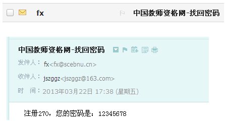 登录邮箱,可以看到主题为“中国教师资格网-找回密码”的邮件,邮件内容包含申报系统登录密码,如下图所示: