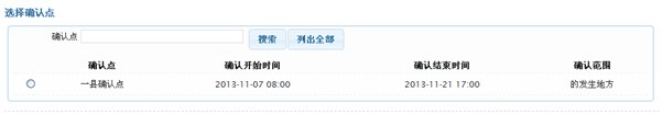 确认点列表中会显示注册机构网报时间段内,所有参与确认工作的确认点信息,供申请人选择。如果没有选择确认点,点击“下一步”按钮时,系统将会给出不能继续的提示。