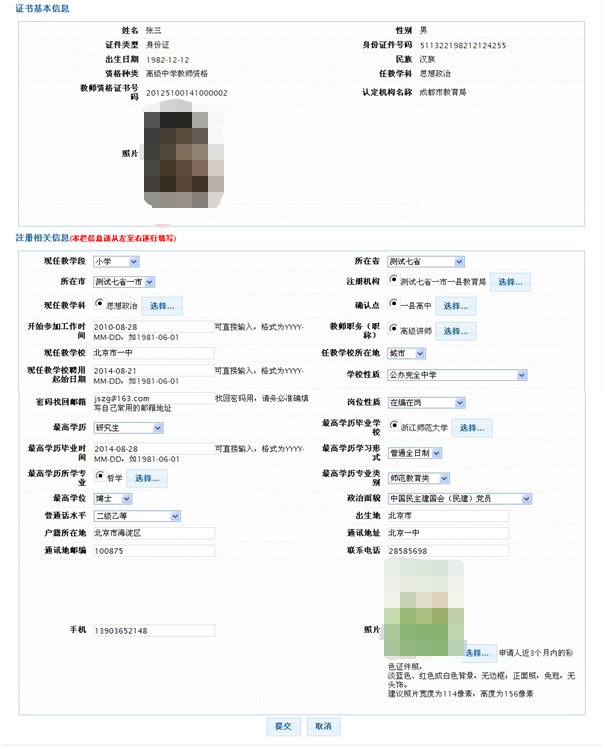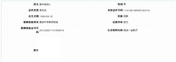 若证书在信息系统中存在,系统将提取相关信息并显示在页面上,如果原来申请认定时没有保存电子照片则电子照片不显示。下面两图,上图是认定时保存有照片,下图是认定时没有保存照片。