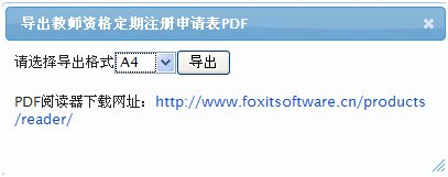 申请人登录后,点击页面右侧的“下载教师资格定期注册申请表”,弹出选择导出格式对话框,如下图所示: