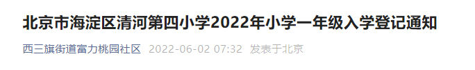 北京市海淀区清河第四小学2022年小学一年级入学登记通知