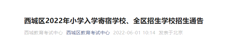 西城区2022年小学入学寄宿学校、全区招生学校招生通告