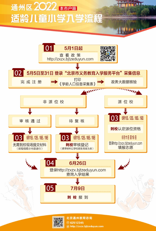 ➤2022年通州区本市户籍适龄儿童小学入学流程图