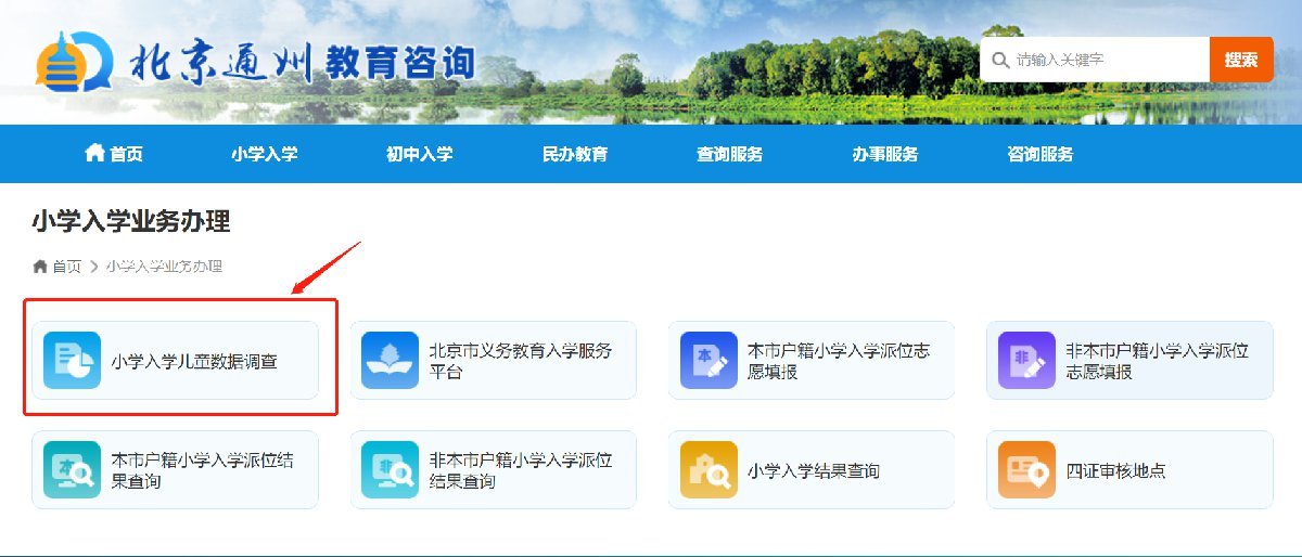 第二步,点击“小学入学业务办理入口”