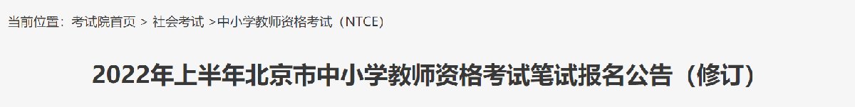 根据教育部考试中心统一部署,2022年上半年中小学教师资格考试笔试将于3月12日举行,报名工作将于1月24日开始,现将北京市中小学教师资格考试笔试报名有关事项公告如下: