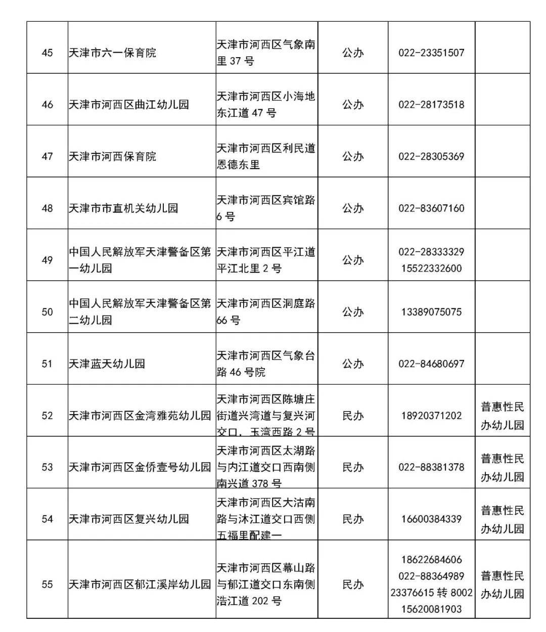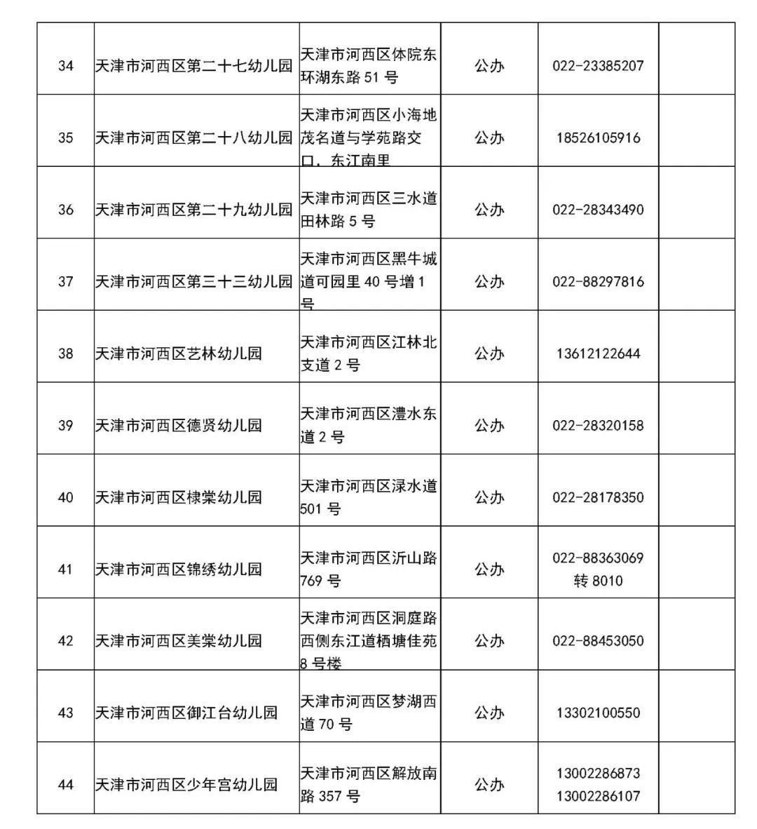 2、河西区所属机关企事业办和部队办幼儿园