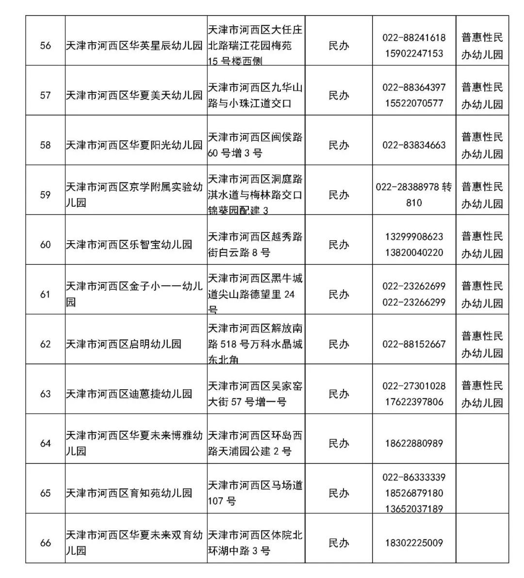 3、河西区所属民办幼儿园