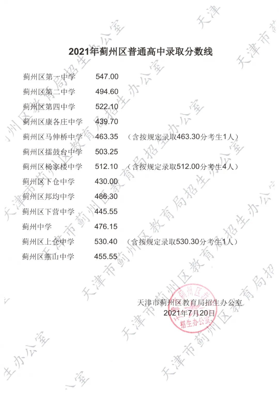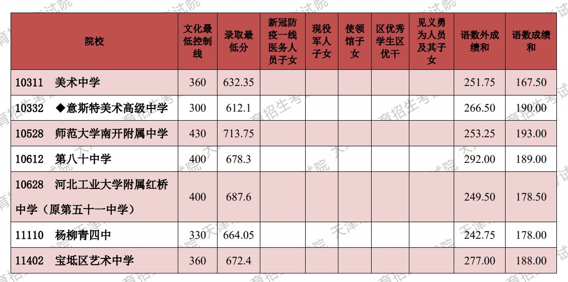 》》》2021天津市各区高中录取分数线