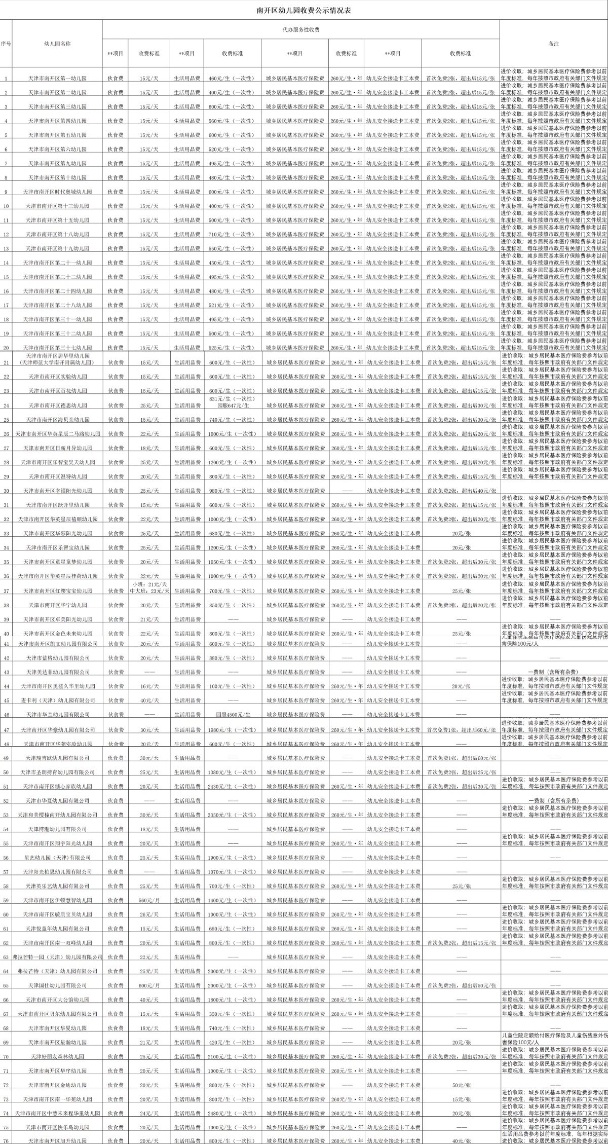幼儿园收费项目包含保教费和代办服务性收费两种,服务性收费中又包含伙食费、生活用品费,城乡居民基本医疗保险费、外出活动费、幼儿安全接送卡工本费等项目,具体收费标准如下: