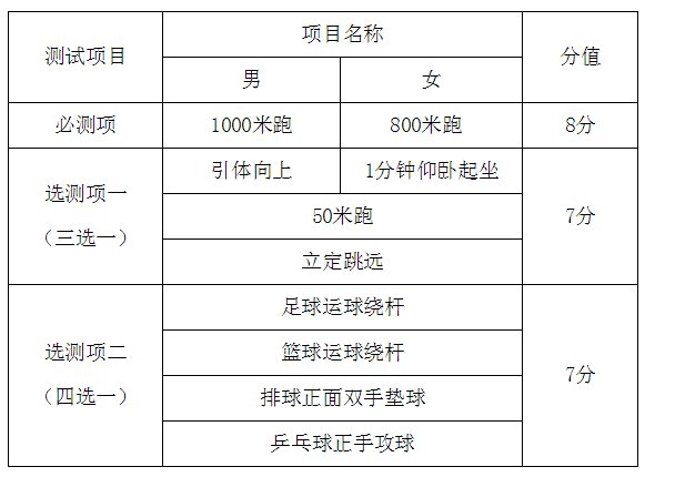 统一测试成绩满分22分,分为必测一项和选测二项,共计三项,内容和分值如下: