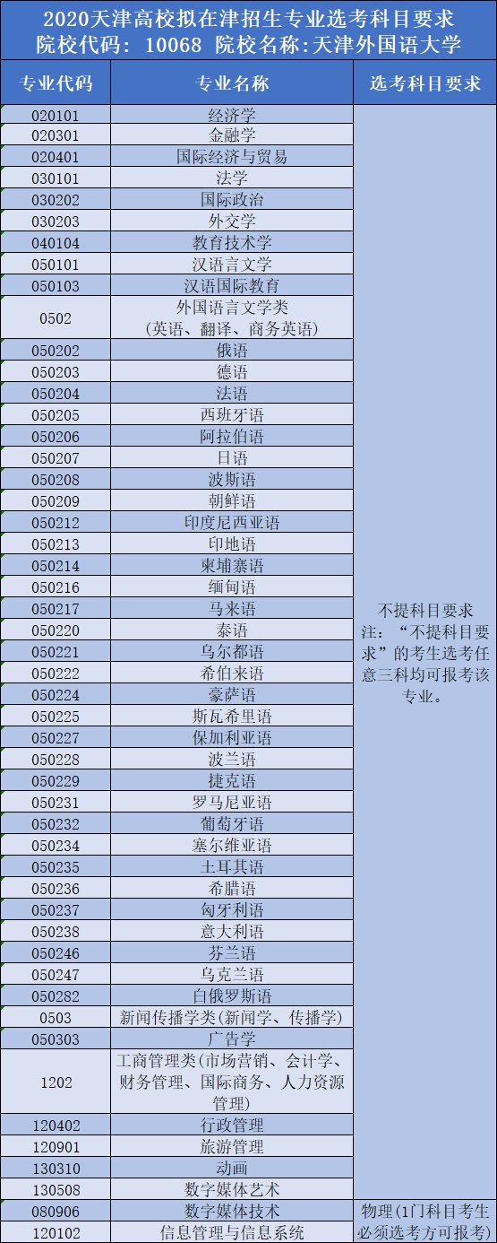 2020天津外国语大学招生专业名单及要求