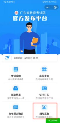 (1)在广东省教育考试院官方小程序上选择报名相片采集,选择考生端进入。