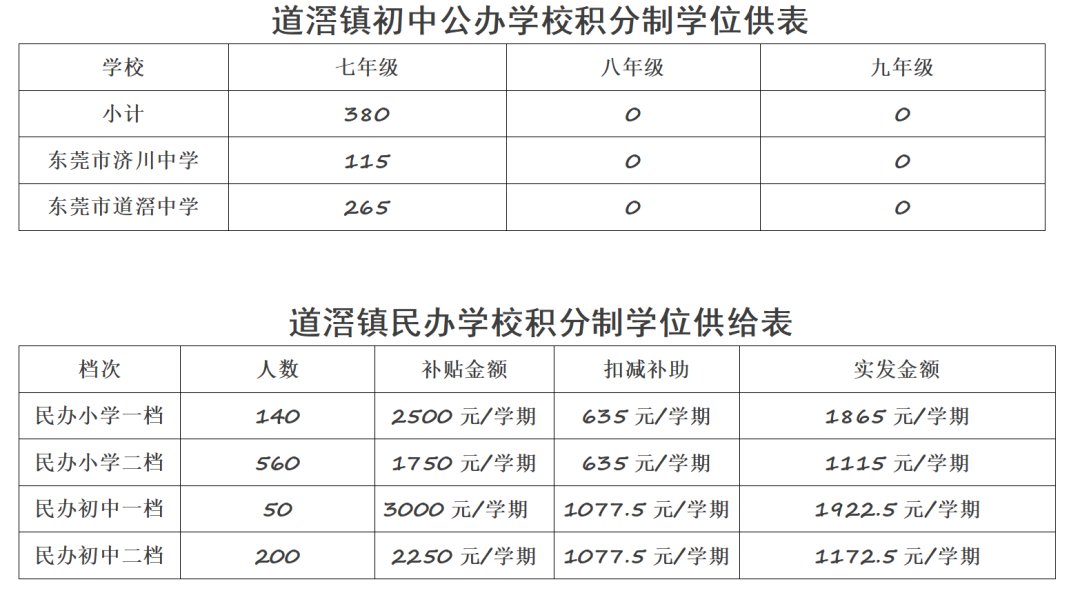 注意:申请积分入学时,请申请人家长网上报名时,除了填写“积分制入学”志愿栏外,还须在“民办学校”志愿类别栏填报道滘镇的民办学校。已经在道滘民办学校就读并享受补贴的非毕业班学生保留原有档次不变,不参与后续排名。