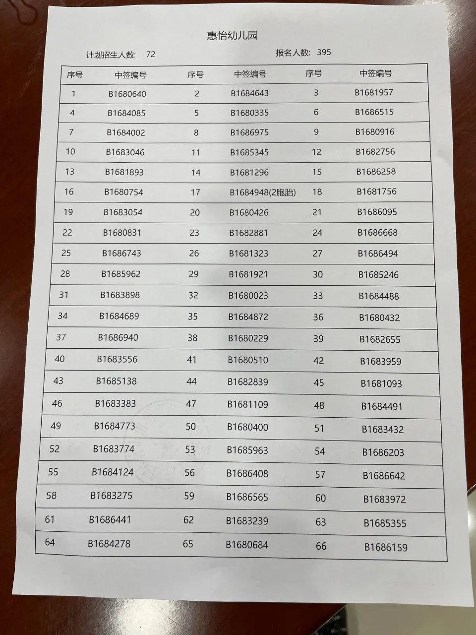 禅城区惠怡幼儿园摇珠录取结果公布: