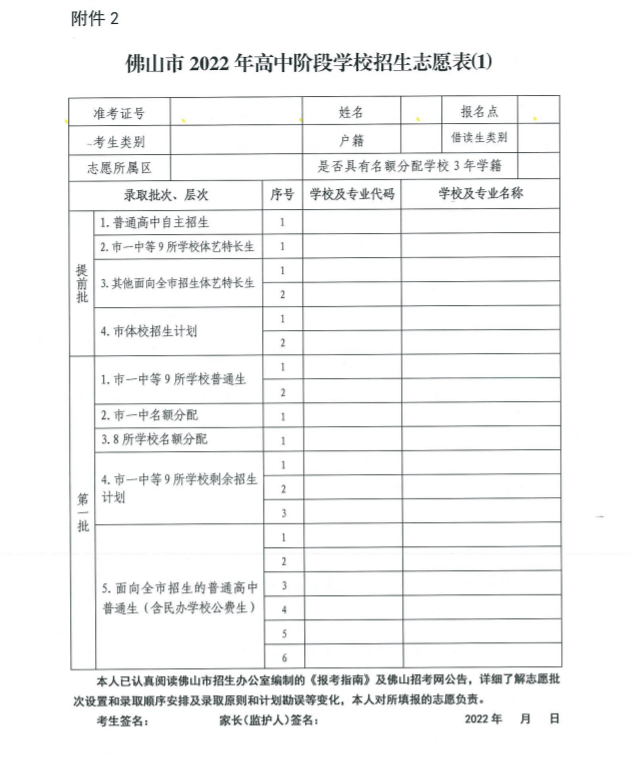 2022年佛山中考志愿填报表格下载入口:点击查看/下载