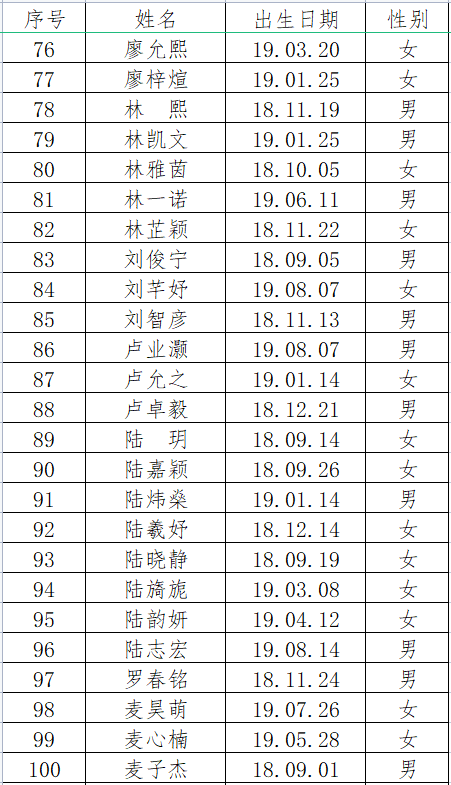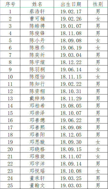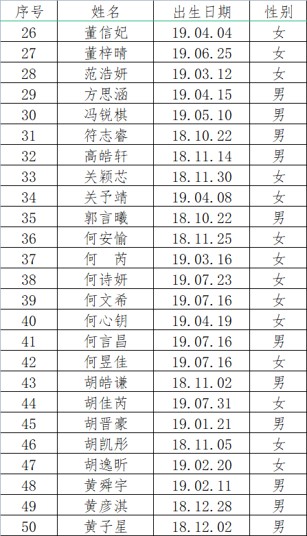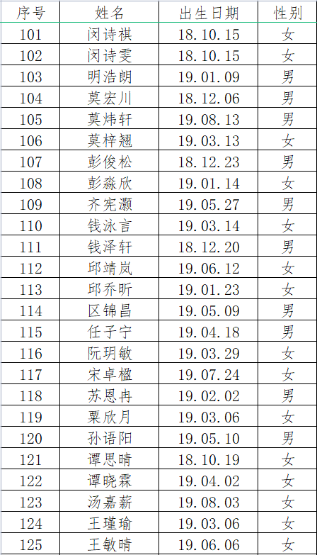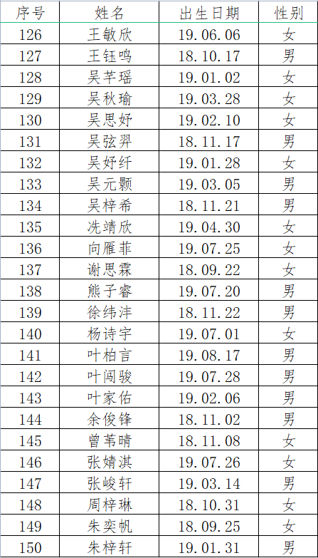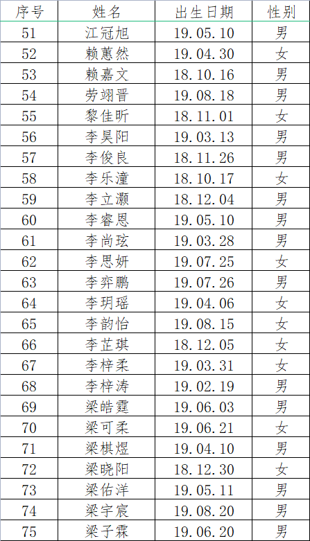 根据佛山市三水区恒星幼儿园招生工作安排,现公布2022年秋季小班新生录取名单(以姓氏拼音首字母排序):