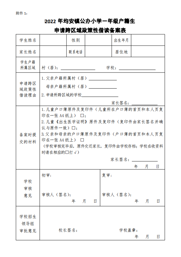 2022年均安镇公办小学一年级户籍生申请跨区域政策性借读备案表下载入口:点击下载(保存二维码至微信识别下载)