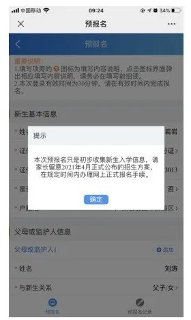 “报读意向”信息填完后,家长可以点击提交按钮,系统会显示“预报名信息浏览”的页面。