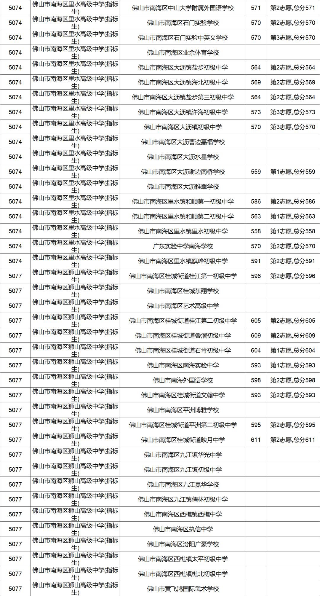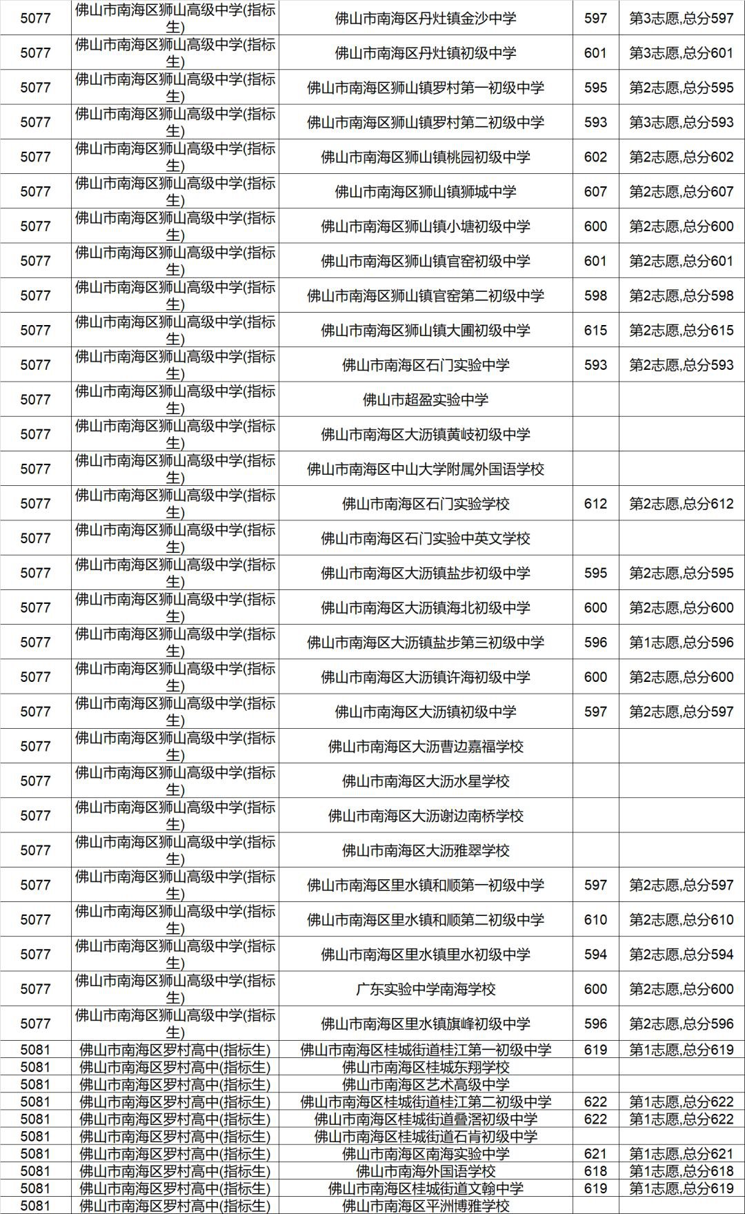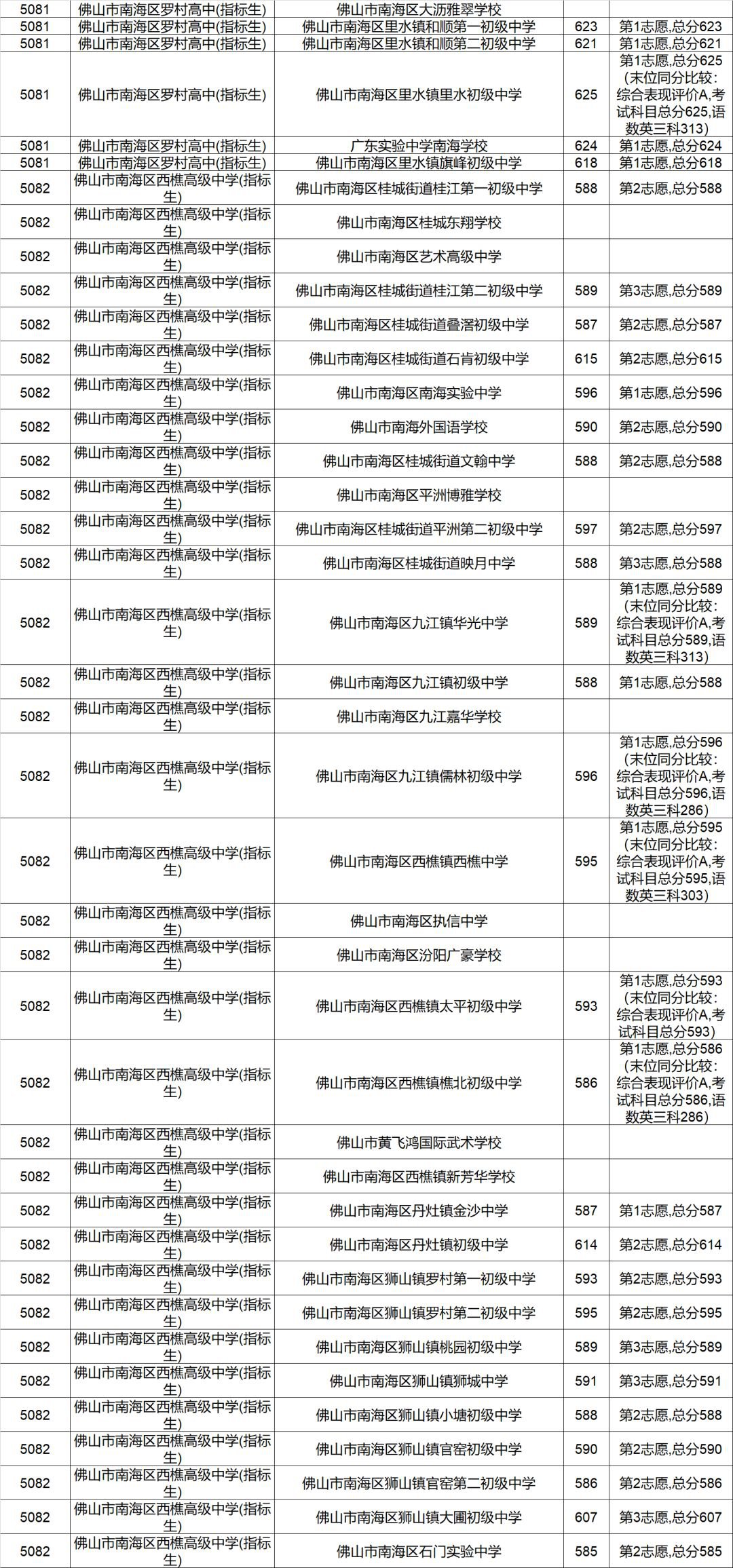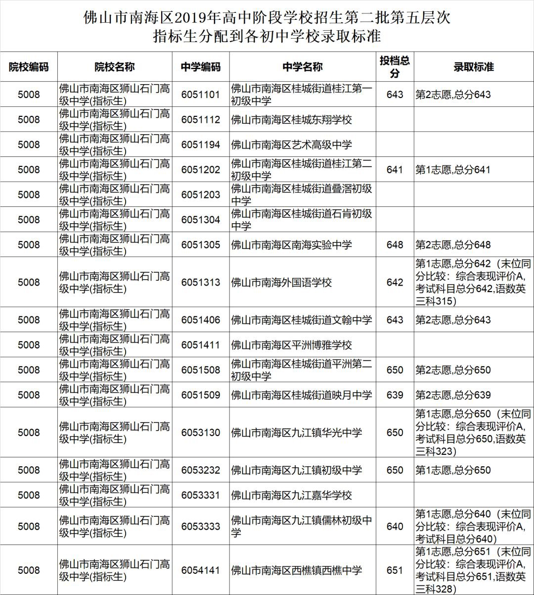 2019年佛山市中考南海区第二批最低录取控制分数线及学校录取标准