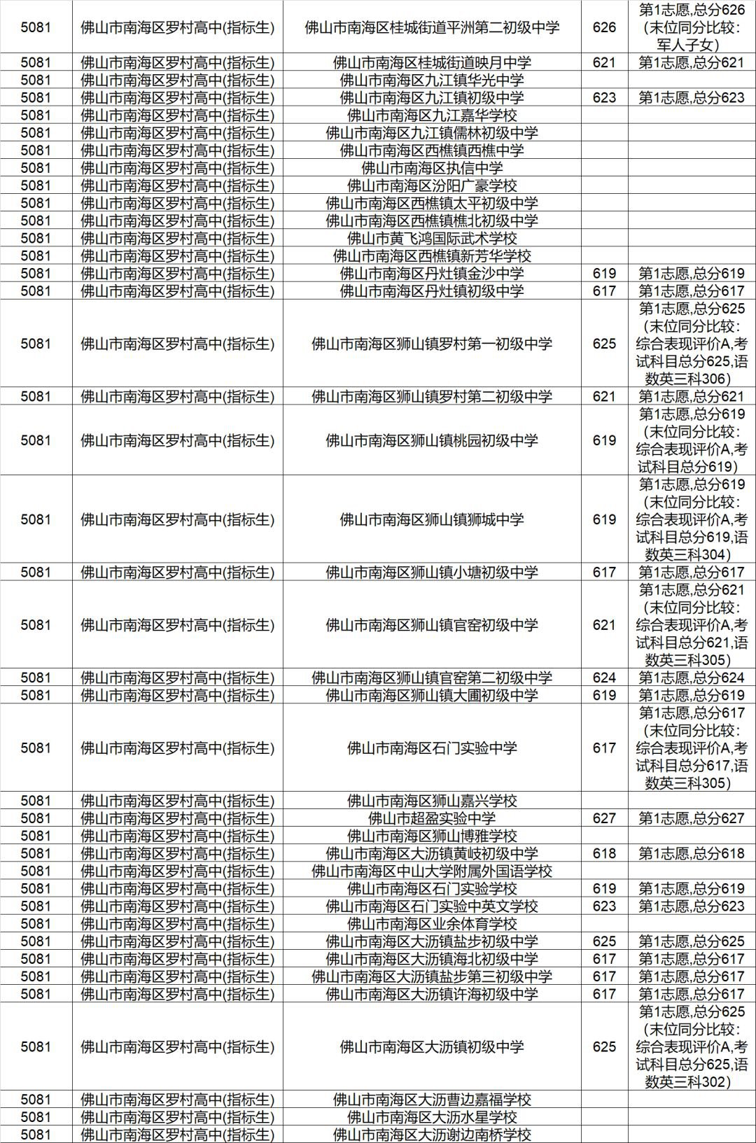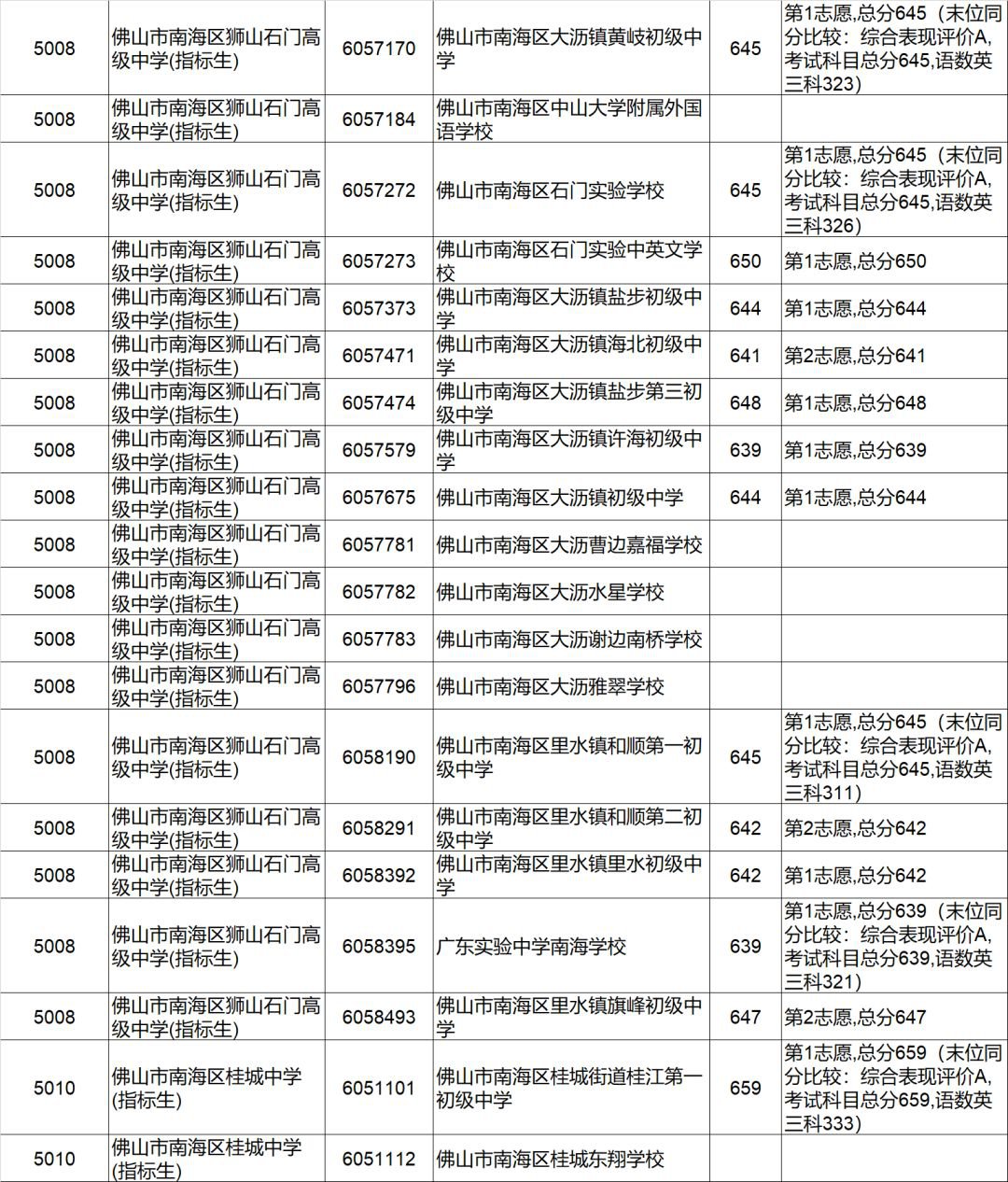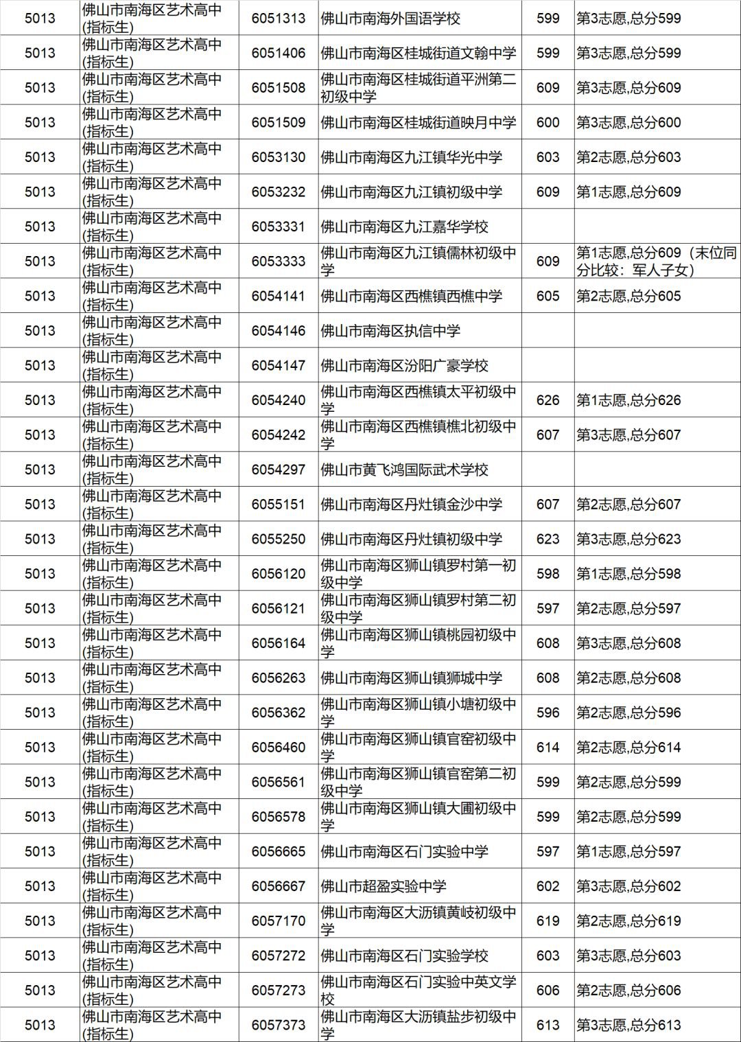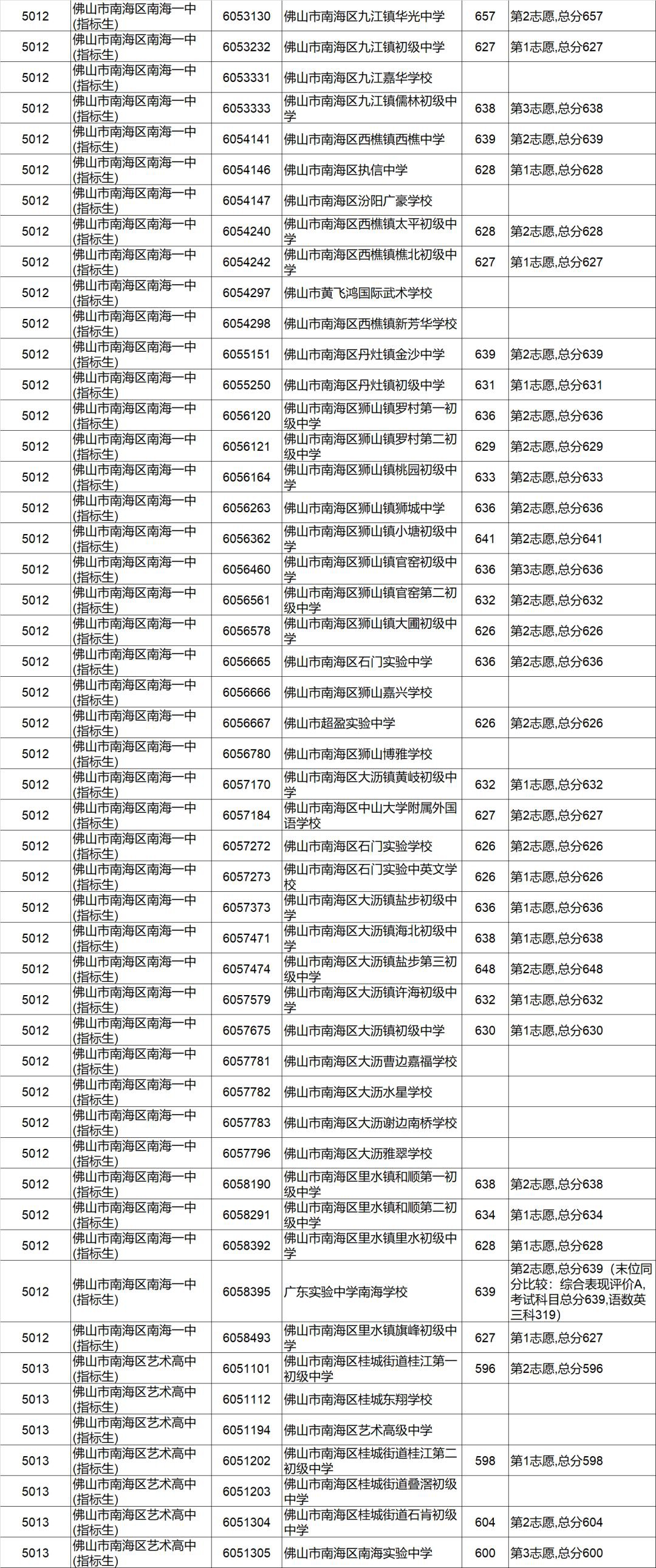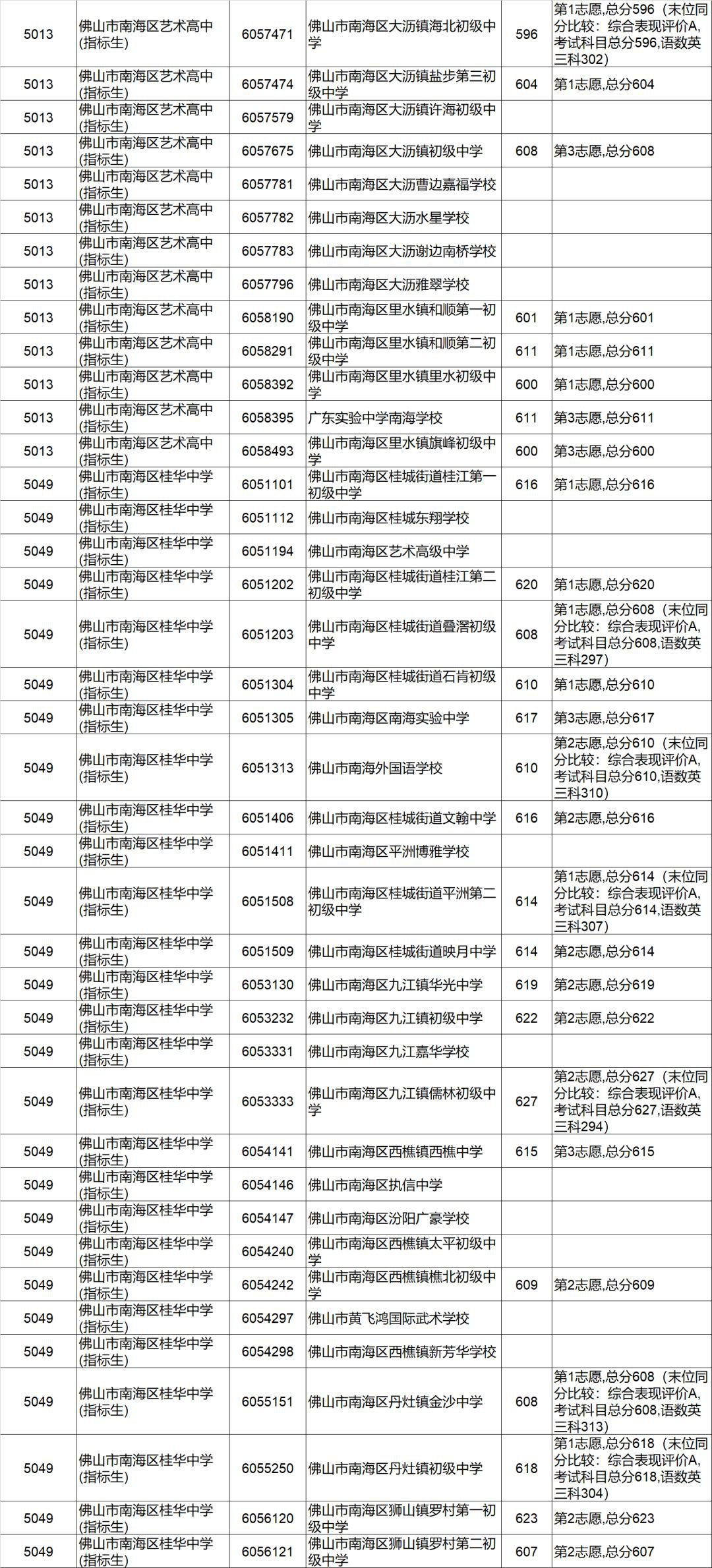 2019年佛山市中考南海区第二批最低录取控制分数线及学校录取标准