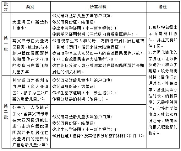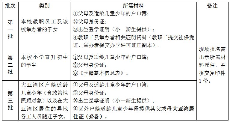 第三批:大亚湾区户籍、大亚湾区异地务工人员随迁子女。