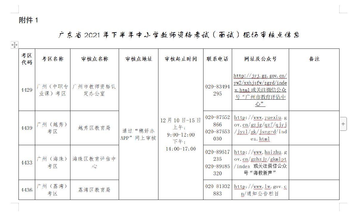 ➤广东省2021年下半年中小学教师资格考试(面试)现场审核点信息:点击下载