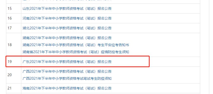 4、向下滑动找到【广东2021年下半年中小学教师资格考试(笔试)报名公告】并点击打开文件