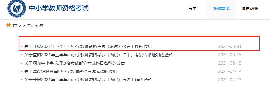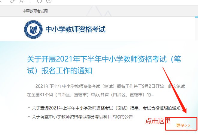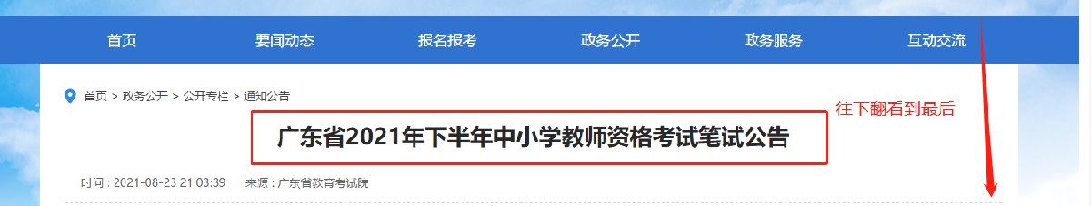 3、点击【关于开展2021年下半年中小学教师资格考试(笔试)报名工作的通知】,进入后向下滑动